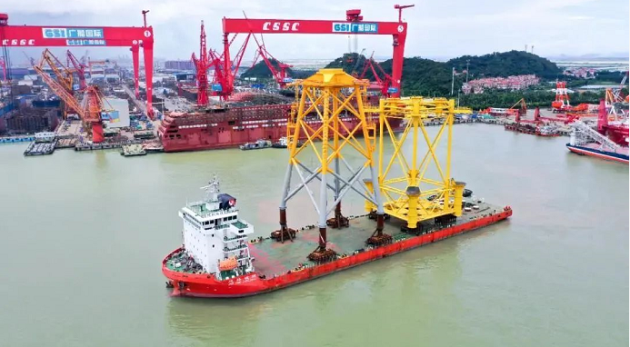 日前,由中國船舶集團旗下廣船國際承建的廣東陽江南鵬島300兆瓦海上風電項目首套導管架及輔助平臺順利交運。這是廣船國際承建并交運的首批首個風電導管架,也是目前國內最大的風電導管架,標志著廣船國際在風電業務領域實現了經營、生產、交付全環節突破,對后續承接風電項目業務、拓展風電市場具有重要意義。