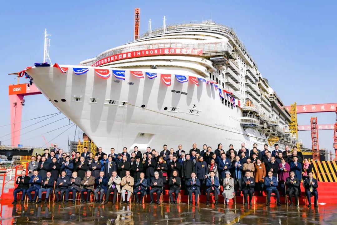 中國船舶集團(tuán)總部有關(guān)部門和所屬相關(guān)企業(yè),以及上海海事局、上海港引航站、嘉年華集團(tuán)、芬坎蒂尼集團(tuán)、中國進(jìn)出口銀行、中國建設(shè)銀行、中國銀行、中國人民財(cái)產(chǎn)保險(xiǎn)股份有限公司、勞氏船級(jí)社、中國船級(jí)社、意大利船級(jí)社、上海建工集團(tuán)等負(fù)責(zé)人出席起浮儀式。