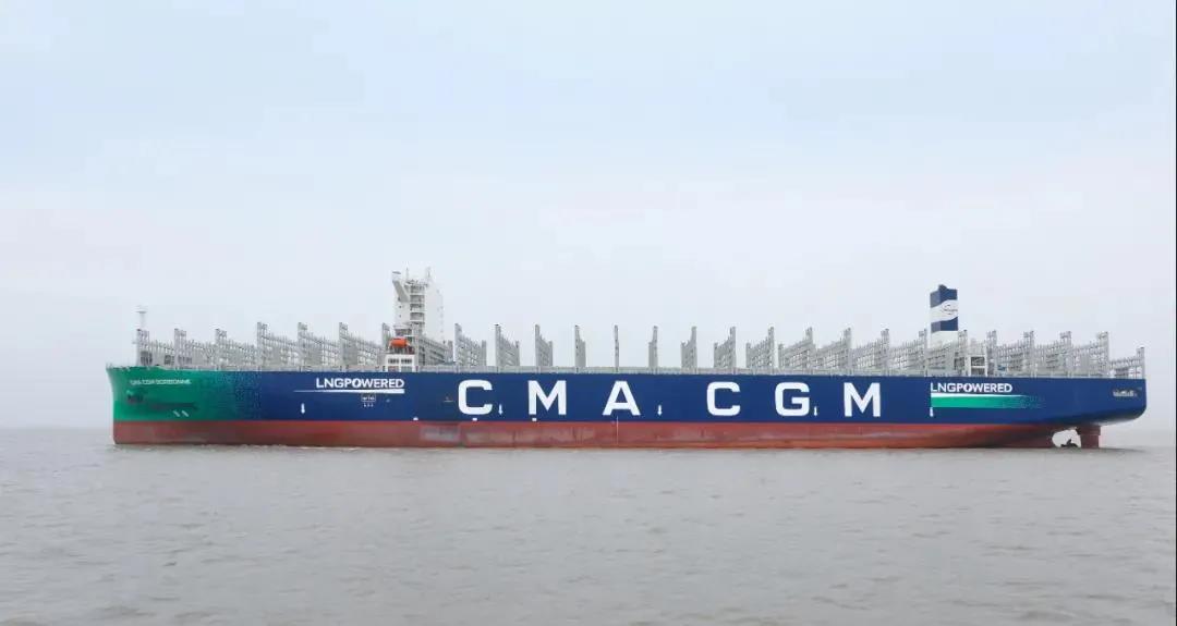 2021年6月29日,中國船舶集團自主研發(fā)設計建造的全球首創(chuàng)最大、最先進23000TEU雙燃料動力集裝箱船“達飛·索邦”號,在中國船舶集團旗下滬東中華命名,并交付給法國達飛海運集團。