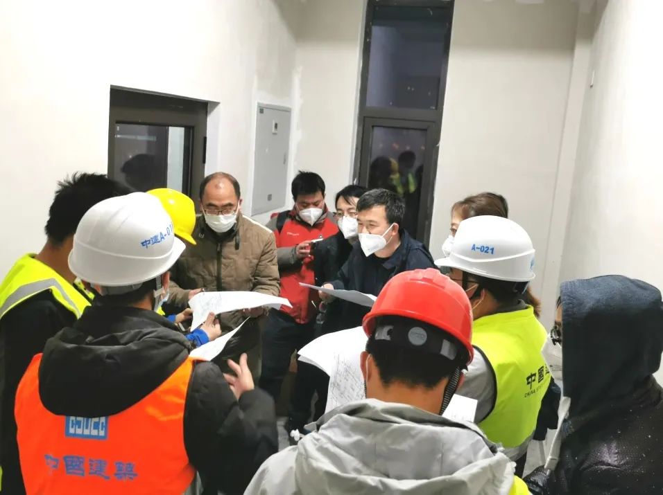 中船九院公司領導帶領項目團隊連續多日通宵在現場工作,及時協調工地各種情況,與集團公司相關部門并肩作戰、及時溝通,提高工作效能;同時堅持實時優化設計,協調工程建設。項目設計負責人、中船九院副總建筑師王川第一時間組織團隊明確職責分工,確定了現場設計、后方設計、現場管理、外場支持等多專業協同配合機制,確保多條線同時作戰、運作高效。總工程師黃延驅車前往長興島專送工程保障設備,長興島實行“只進不出”,他就直接加入現場設計團隊,10天沒有下島。設計團隊中三位女設計師沈清清、胡雁、沈峻,更是巾幗不讓須眉,創造性地解決了暖風系統設計等一系列難題,堅守一線直到項目最終交付。項目管理團隊的戴鳳波、徐詠春、欒海林、王后軍、屈杰、倪冬輝等人把現場當作家,3天只在賓館住了3個小時,其余時間都在車上、辦公桌上度過。項目部顧建章、汪凱則協調運輸通行資源,解決了建設期間工程人員的基本飲食問題。與此同時,還有更多的人在后方作戰斗支撐,中船九院建筑一院院長曾志堅迅速組織本部設計團隊,緊急將居家辦公的相關專業骨干召回,組成了包括張瓊、瞿駸、郭鳳群、李嘯、蔣斌等18名骨干在內,建筑、結構、水、電、風、經濟各專業齊全的團隊。之后因項目需要,胡雁、瞿革、瞿駸上島加入現場設計團隊。