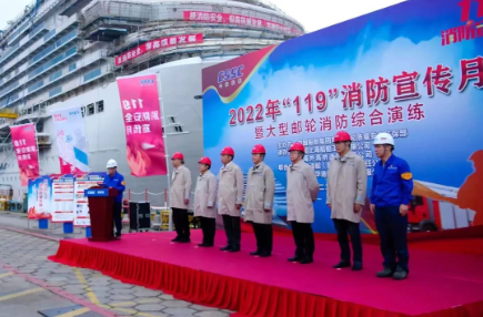 船舶建造過程中動火作業多、交叉作業多、有限空間多,消防安全一直以來都是企業安全生產工作的重點。本次演練選取大型郵輪作為演練對象,情景模擬船上發現火情后,外高橋造船以及聯合演練單位的消防隊伍實施協同救援,包括初期火情應對、應急報告、船上人員疏散、被困人員搜救、滅火等內容,檢驗了企業應對突發火情的快速反應能力和協同作戰能力。