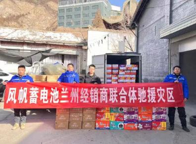 12月21日,風帆公司聯合甘肅蓄電池經銷商為地震災區臨時救助點提供了飲用水、方便面、棉衣生活物資,支援抗震救災工作。