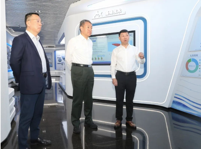 在上海船舶研究設計院,溫剛調研了院展廳和智能船舶實驗室,聽取了成員單位負責人關于重點工作、生產經營、科研發展、未來規劃等方面情況匯報,并對下一步工作提出具體要求。