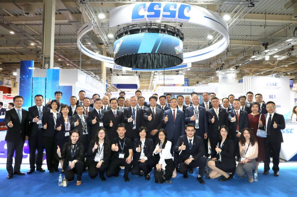 此次展會(huì),中國船舶集團(tuán)攜旗下19家成員單位參展,有關(guān)成員單位負(fù)責(zé)人率隊(duì)赴展會(huì)開展重點(diǎn)船海項(xiàng)目經(jīng)營洽談并拜訪當(dāng)?shù)睾椭苓厙铱蛻簟<瘓F(tuán)公司以“共贏未來”為參展主題,設(shè)置集團(tuán)總體區(qū)、綠色航運(yùn)解決方案區(qū)、低碳環(huán)保配套設(shè)備區(qū)共3個(gè)展示區(qū)域,重點(diǎn)展示了135500總噸大型郵輪、175000方LNG運(yùn)輸船、24000箱超大型集裝箱船、210000噸氨燃料散貨船、LNG雙燃料VLCC等一系列高技術(shù)、高附加值明星產(chǎn)品,以及CPGC-WinGD 10X92DF-M甲醇雙燃料發(fā)動(dòng)機(jī)、船用碳捕捉系統(tǒng)等全球船東高度關(guān)注的綠色低碳配套設(shè)備。同時(shí),通過展臺(tái)上醒目的品牌標(biāo)識(shí)、層級(jí)化的品牌體系圖、富有感染力的品牌推介視頻,首次面向全球客戶,立體化展示“中國船舶”品牌及下屬企業(yè)品牌和產(chǎn)品品牌體系,進(jìn)一步強(qiáng)化了集團(tuán)公司品牌形象。