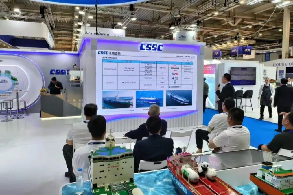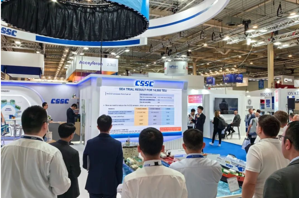 展會(huì)期間促成集團(tuán)公司多家成員單位船海項(xiàng)目成功簽約,共計(jì)超50億元人民幣,包括中船貿(mào)易、廣船國際與EPS公司4艘11萬噸LRII型LNG雙燃料油輪項(xiàng)目簽約、與ASP公司2艘5萬噸MR甲醇雙燃料油輪項(xiàng)目簽約,中船貿(mào)易、大連造船與CAPITAL公司2艘30萬噸VLCC建造項(xiàng)目簽約,另外還簽訂了40多億元新造船項(xiàng)目意向書;同時(shí),參展成員單位在集團(tuán)公司展臺(tái)上開展了豐富的推介活動(dòng),包括江南造船“綠色船型家族”產(chǎn)品推介會(huì)、中船系統(tǒng)院“羅經(jīng)進(jìn)入光纖時(shí)代”產(chǎn)品推介會(huì)、七一一所“全球首個(gè)全流程船用碳捕捉系統(tǒng)案例分享會(huì)”,吸引了眾多國際船東、船級(jí)社和設(shè)備廠商前來觀摩,并共同探討未來合作機(jī)遇。