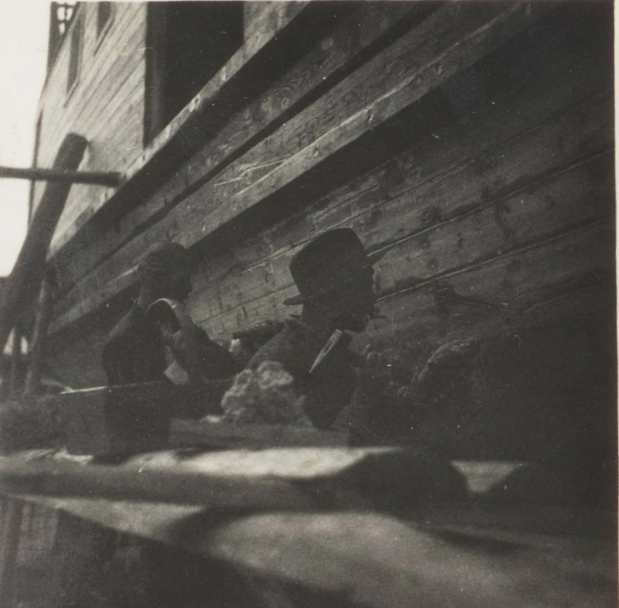 1934年武漢,上世紀(jì)30年代,武昌造船成立之初,工人們以手工作業(yè)“敲敲打打”形式開展修造船業(yè)務(wù)。修造的船只大多為100~300噸、鋼肋骨與木殼結(jié)構(gòu),僅有少量是鋼鉚接船體。建造的船只只能在長江上航行跑跑運輸。為了生存和救國,船廠還建造一些農(nóng)用機(jī)械器具、槍支,以輔助民生、支援抗日。