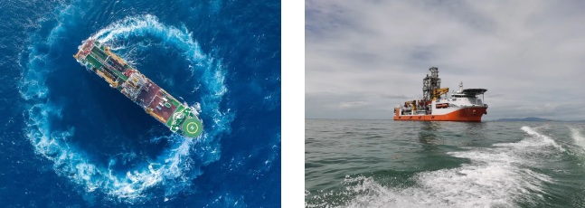 #  通過配置最先進的DP-3級動力定位系統,自動調整船舶底部7臺推進器的轉向和推力大小,來抵抗海上風、浪、流作用在船上的載荷,使船舶在海上保持一定的水平位置;