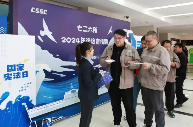 2024年是新中國第一部憲法頒布70周年,今年12月4日是第十一個國家憲法日。按照中央宣傳部、司法部、全國普法辦《2024年全國“憲法宣傳周”工作方案》的部署要求,中國船舶集團(tuán)有限公司以“大力弘揚憲法精神,推動進(jìn)一步全面深化改革”為主題開展法治宣傳周活動,深入學(xué)習(xí)宣傳貫徹習(xí)近平法治思想,弘揚憲法法治精神,宣貫法治央企建設(shè)要求和集團(tuán)公司“懸規(guī)植矩、循序善治”特色法治文化,為建設(shè)世界一流法治企業(yè)營造濃厚的法治氛圍。