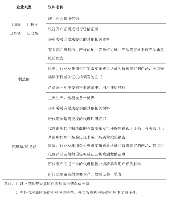 4.對于提供審核資料弄虛作假、被國家相關部門、同行業央企納入黑名單或列為不誠信人的企業及企業法人不予準入。
