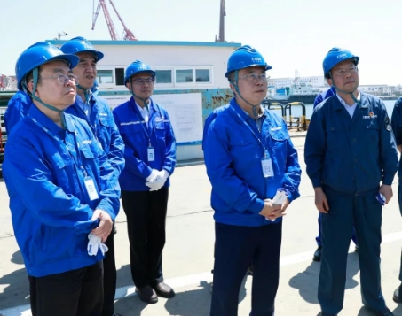 王國(guó)強(qiáng)深入船塢、碼頭、試驗(yàn)現(xiàn)場(chǎng)等科研生產(chǎn)一線(xiàn),察看了相關(guān)產(chǎn)品、重點(diǎn)建設(shè)項(xiàng)目,與一線(xiàn)員工就工作、生活情況親切交流,并聽(tīng)取了相關(guān)單位發(fā)展情況、科技創(chuàng)新、安全生產(chǎn)等情況匯報(bào)。