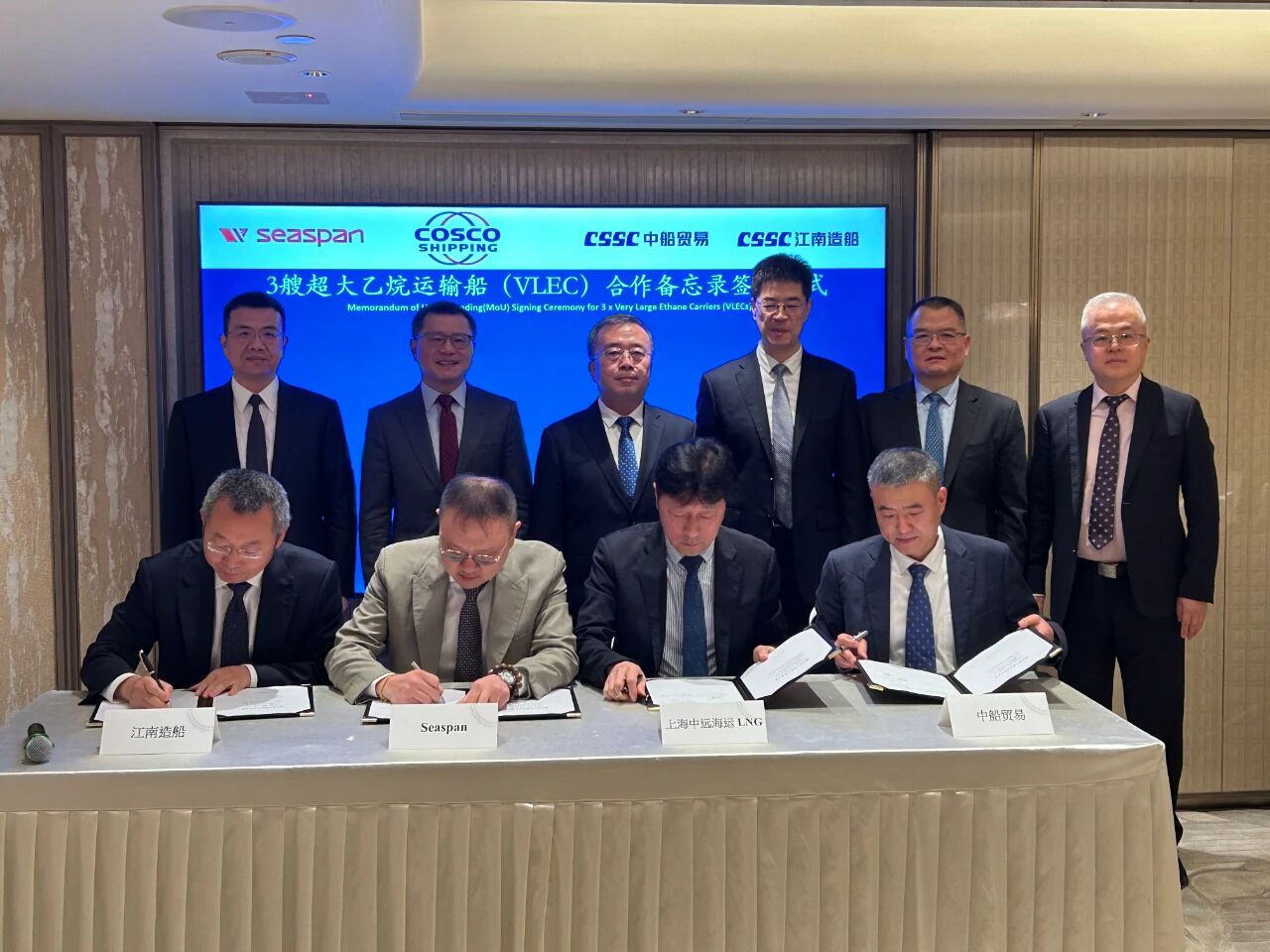 王國強同時見證了中船集團與中旅集團簽署戰略合作協議,中船集團旗下江南造船聯合中船貿易與Seaspan、上海中遠海運LNG簽署超大乙烷運輸船(VLEC)合作備忘錄;與相關中央企業舉行會談并簽署戰略合作協議。
