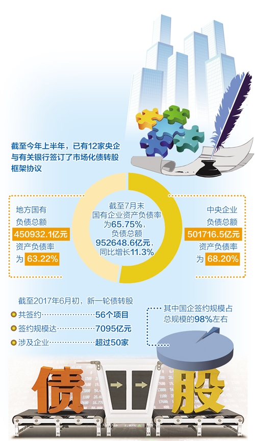 數(shù)據(jù)顯示,截至2017年6月初,我國新一輪債轉(zhuǎn)股共簽約56個項目,簽約規(guī)模達7095億元,涉及企業(yè)超過50家,其中以國企為主,簽約規(guī)模占總規(guī)模的98%左右。