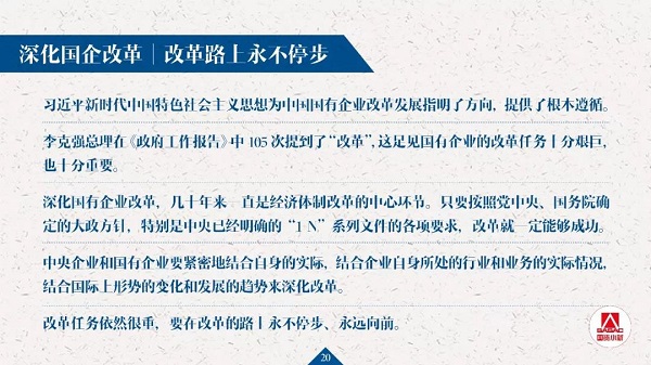 十三屆全國(guó)人大二次會(huì)議新聞中心于3月9日(星期六)15時(shí)在梅地亞中心新聞發(fā)布廳舉行記者會(huì),邀請(qǐng)國(guó)務(wù)院國(guó)資委主任肖亞慶,副主任翁杰明,秘書長(zhǎng)、新聞發(fā)言人彭華崗就“國(guó)有企業(yè)改革發(fā)展”相關(guān)問(wèn)題回答中外記者提問(wèn)。本次記者會(huì)內(nèi)容豐富、亮點(diǎn)多多,重點(diǎn)內(nèi)容以20頁(yè)P(yáng)PT條分縷析,盡覽國(guó)企國(guó)資改革發(fā)展熱點(diǎn)問(wèn)題答案。