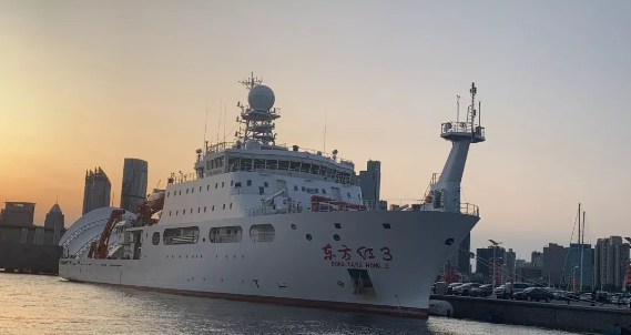 “東方紅3”號是我國自主創新研發的新一代深海大洋綜合科學考察實習船,2013年由教育部立項建設,2019年6月交付使用,是國內首艘、國際上第四艘獲得DNV GL簽發的船舶水下輻射噪聲最高等級——靜音科考級(SILENT-R)證書的海洋綜合科考船,也是世界上獲得這一等級證書排水量最大的海洋綜合科考船。