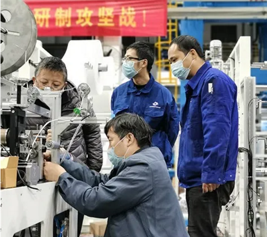 ????2月21日,平面口罩機(jī)樣機(jī)成功下線;2月27日深夜,首臺平面口罩機(jī)交付;3月5日,僅7天時間,產(chǎn)品先后發(fā)往中國石油(蘭州)、中糧集團(tuán)、哈藥集團(tuán)等6家企業(yè),輻射范圍涵蓋了我國西北、東北、華北、東南各地,以實(shí)際行動完成了一次完美開局。