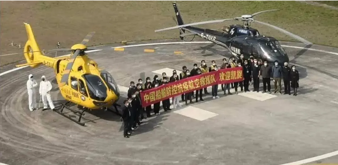????3月18日,隨著兩架直升機(jī)緩緩降落在上海金橋直升機(jī)基地,中國船舶防控抗疫航空救援隊(duì)在圓滿完成湖北抗疫任務(wù)后凱旋!2月5日,在中國船舶集團(tuán)系統(tǒng)工程院的統(tǒng)一部署下,海豐通航與中瑞通航組成中國船舶防控抗疫航空救援隊(duì),先后投入三架直升機(jī),赴武漢、溫州,輾轉(zhuǎn)仙桃、宜昌、黃岡等地,歷時(shí)四十天,飛行近百小時(shí),轉(zhuǎn)運(yùn)抗疫急救物資十多萬件,充分發(fā)揮了直升機(jī)靈活、高效的優(yōu)勢(shì),成為防控抗疫行動(dòng)中重要的空中力量。