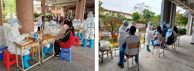 ????當天傍晚,兩家醫院順利完成了852名學生的咽拭子采樣工作。