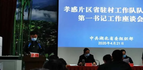 △ 王占偉在關(guān)于孝感片區(qū)省駐村工作隊(duì)隊(duì)長(zhǎng)、第一書(shū)記工作座談會(huì)上交流發(fā)言