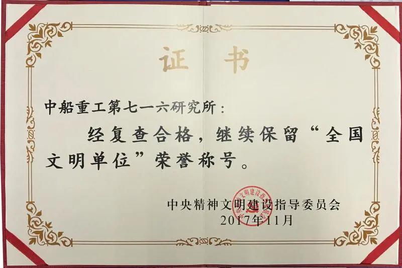????55年里,孕育了“團結、攻堅、開拓、奉獻”的七一六精神,形成了“人本、責任、團隊、進取”的核心價值觀,以及“團結攻堅、開拓奉獻,嚴謹求實、快捷高效”的七一六作風,創立了特色軍工文化體系,七一六人過硬的作風得到了軍隊和企業客戶的一致認可。七一六所先后榮獲了“全國文明單位”“全國實施卓越績效模式先進企業”“中央企業先進集體”“全面質量管理推進40周年杰出推進單位”“新中國70年企業文化建設優秀單位”等榮譽稱號。