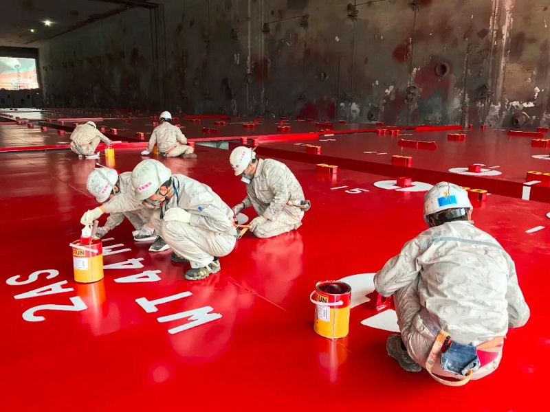 ????最“驚心動魄”的要屬最后一批到廠的16塊艙口蓋。4月20日回廠,21日沖砂報驗結束,留給涂裝二部的時間不到5天,而以往這些工作至少需要8天。該部門當時根據天氣、溫度、油漆廠商的技術服務,積極與船東協商最終敲定了36小時的淋水時長,打破了以往最短時間的紀錄,最終一次性取得成功。
