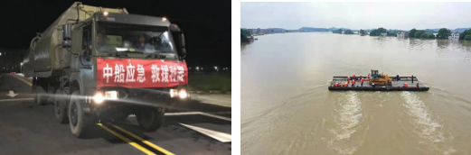 △ 中船應(yīng)急動力舟橋正在運輸大型工程裝備進(jìn)行抗洪搶險