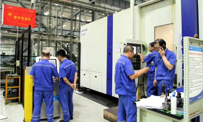 凌晨三點(diǎn)的中國船舶集團(tuán)旗下重慶紅江聯(lián)合廠房,室外,三伏天近40℃的高溫帶來的酷熱并沒有因入夜而降下來;室內(nèi),機(jī)床轟響燈火通明,一號(hào)車間最先進(jìn)的三臺(tái)臥式加工中心開足馬力全速運(yùn)轉(zhuǎn)。