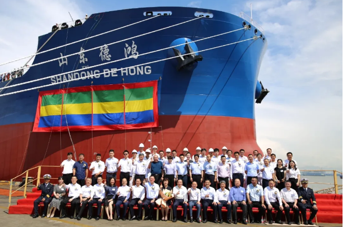 8月28日,中國船舶集團旗下外高橋造船為山東海運建造的、由交銀租賃提供融資的18萬噸好望角型散貨船“山東德鴻”號在上海命名交付。這是外高橋造船與山東海運合作的10艘18萬噸系列散貨船中的第4艘,也是外高橋造船年內交付的第20艘新船。