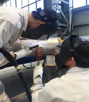 鈦合金材料具有良好的耐高溫、耐腐蝕、耐磨損、耐疲勞、輕量化特點,作為船用材料有著廣闊的應用前景。2017年,集團公司旗下單位曾成立專項組集中攻關鈦合金管的制造工藝,周蔚慈就是參與者之一。雖然鈦合金材料優點突出,但焊縫塑性低、合金導熱性比一般鋼鐵差4倍,且沒有經驗參考,這為焊接工藝的制訂帶來極大挑戰。