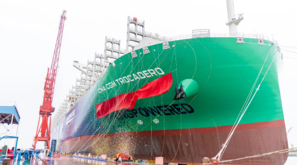 2017年9月,中國船舶集團與法國達飛集團簽署九艘23000TEU超大型集裝箱船建造合同,截至目前,已交付八艘。 該系列船均由中國船舶集團七〇八所自主研發(fā)設(shè)計,是首次引入液化天然氣雙燃料系統(tǒng)的超大型集裝箱船。因為它又大又環(huán)保,是名副其實的海上“巨無霸”,我們都叫它“綠巨人”!