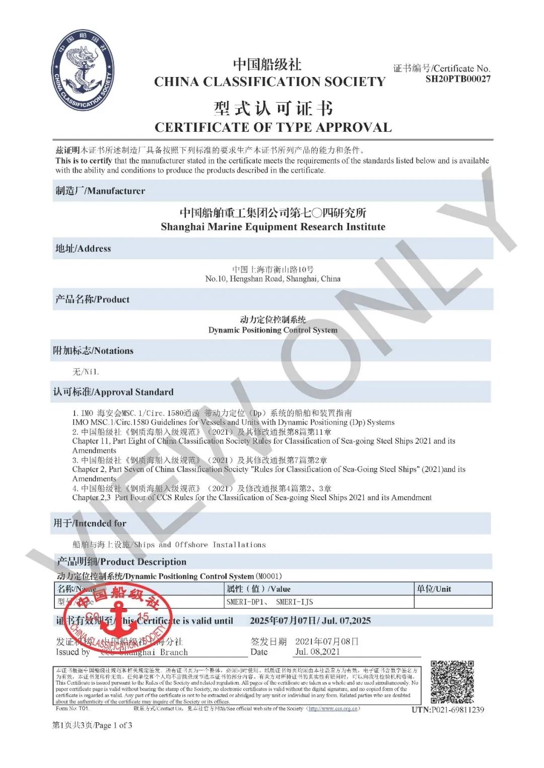8月5日,中國船舶集團七〇四所動力定位控制系統(tǒng)(DP系統(tǒng))獲中國船級社(CCS)授予的國產(chǎn)化型式認可證書。該所成為國內第一家滿足CCS2021年最新《鋼質海船入級規(guī)范》要求的動力定位控制設備及系統(tǒng)供應商。