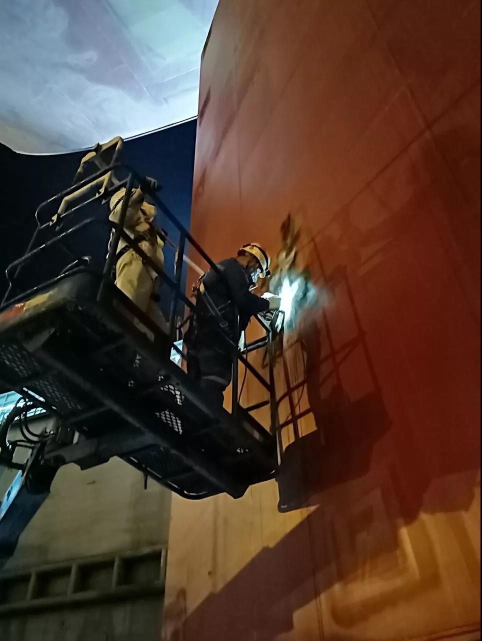 為保證出塢節(jié)點,無損檢測人員在國慶節(jié)加班加點對舵葉封板焊縫磁粉檢測。