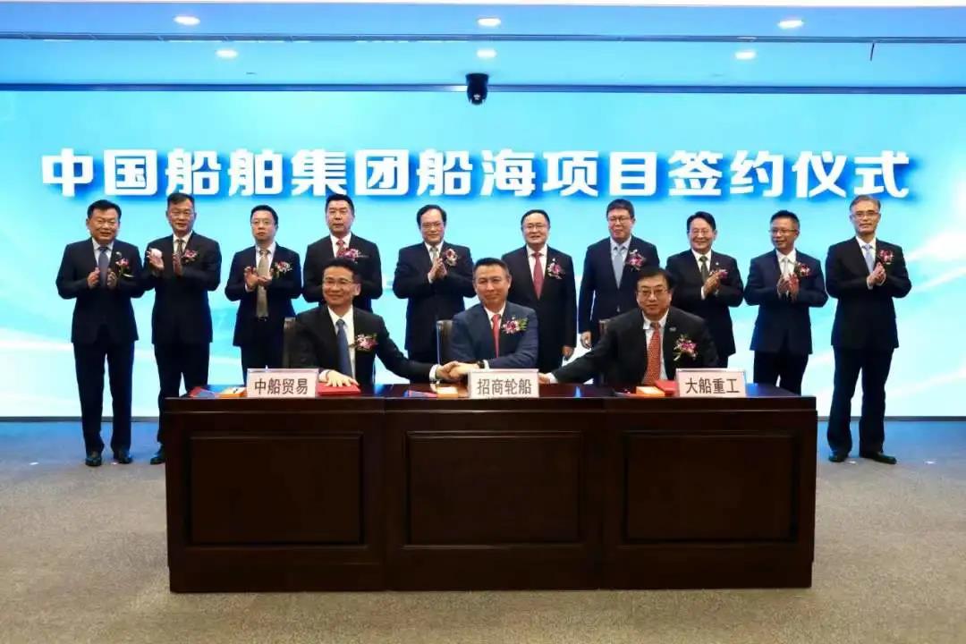 12月17日,在中國(guó)船舶集團(tuán)船海項(xiàng)目集中簽約儀式上,大船集團(tuán)聯(lián)合中船貿(mào)易與招商局集團(tuán)旗下招商輪船簽署1+1艘大型LNG運(yùn)輸船合作意向書(shū)。