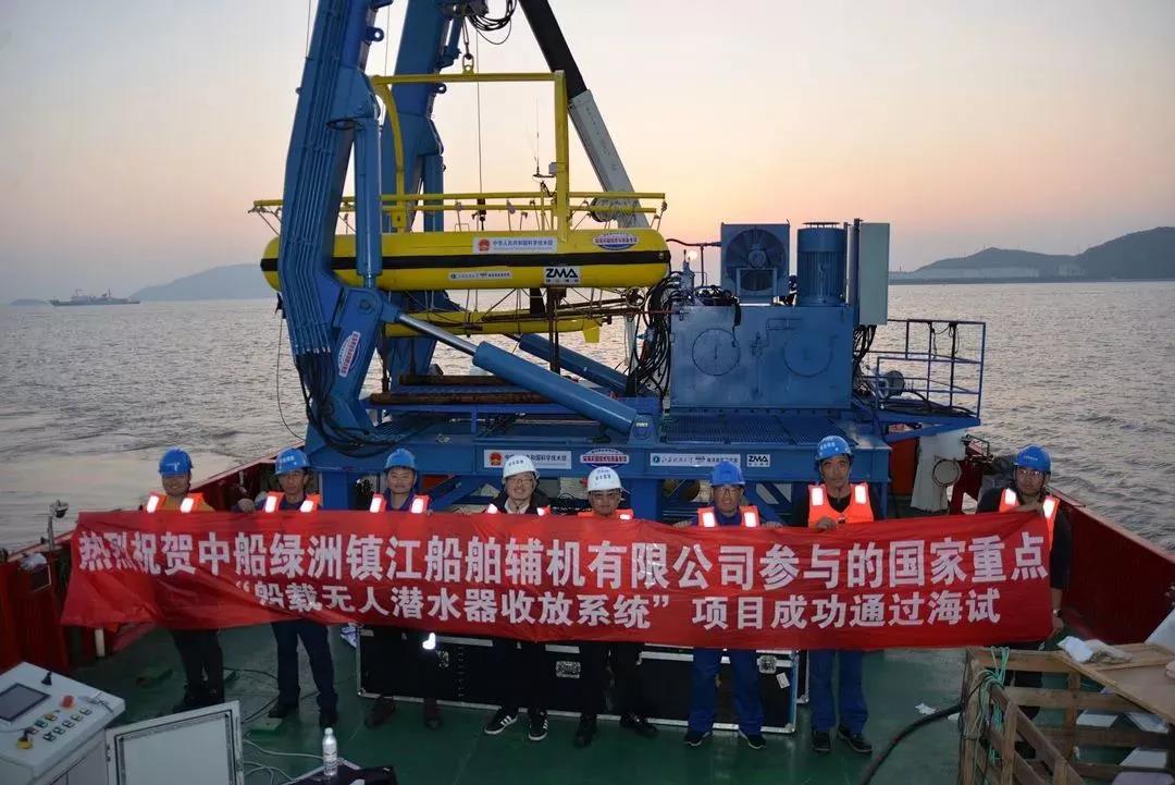 近日,中國船舶集團旗下中船綠洲所屬鎮江船機參與的“船載無人潛水器收放系統” 項目通過規范化海上試驗。