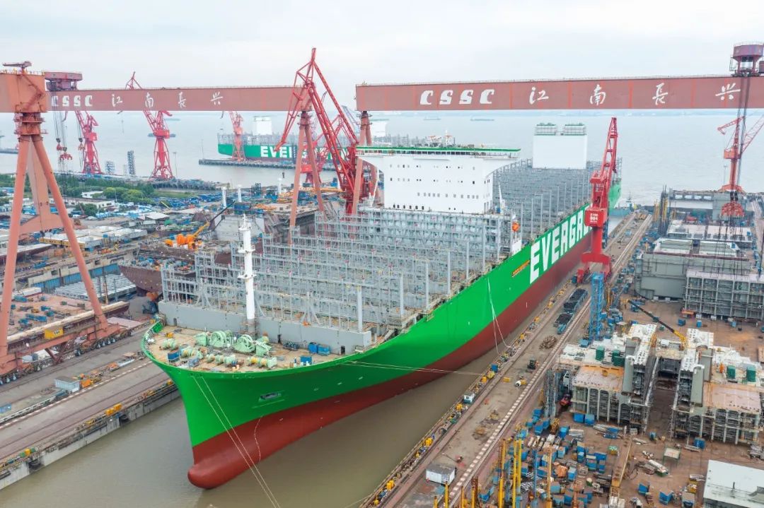 5月19日,中國(guó)船舶集團(tuán)旗下滬東中華雙喜臨門。其建造的全球最大裝箱量24000TEU超大型集裝箱船2號(hào)船在長(zhǎng)興造船基地順利出塢;建造的13000噸多用途重吊船12號(hào)船在浦東廠區(qū)命名交付,標(biāo)志著該項(xiàng)目圓滿收官。這是滬東中華自復(fù)工復(fù)產(chǎn)以來(lái)首次實(shí)現(xiàn)一天完成兩大生產(chǎn)節(jié)點(diǎn)。