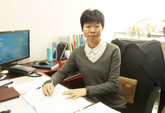 毛獻群在辦公室工作