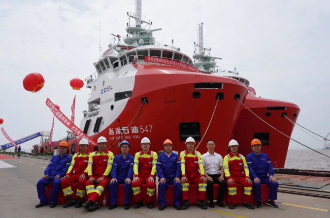 此次交付的“海洋石油542”和“海洋石油547”船是專門為我國海洋石油開發提供支持服務的船舶,可為海上油氣開發提供值班守護、貨物運輸、救助以及對外消防等服務。該批船舶完全實現國內設計、國內建造,智能船舶系統、核心LNG儲罐及供氣系統、加注系統、主機、舵槳裝置均實現自主知識產權國產化,標志著我國綠色化、智能化海工船設計、建造能力達到國際一流水平。
