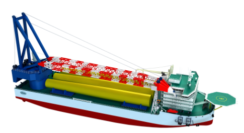 該船船長186米,寬48米,型深16米,滿載排水量約90000余噸。起重機采用單舷側布置設計,起吊高度可達主甲板以上145米,相當于50層摩天大廈。還配備有DP2級動力定位系統,可實現深遠??焖?、精確定位。能夠在海上風電場進行各項風電工程作業,主要包括10兆瓦及以下海上風機的基座、支撐塔架、機艙及葉片的吊裝和風機基礎等施工作業,以及其他海上吊裝或支持作業。
