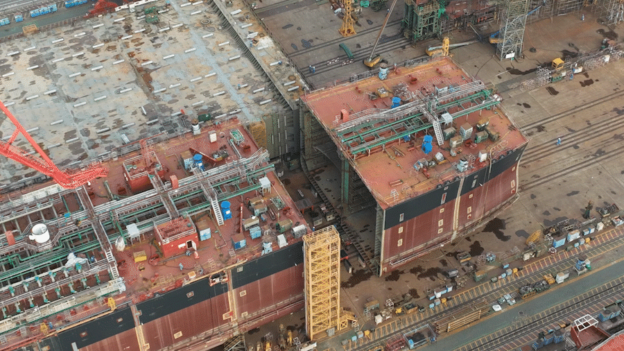 來欣賞“拼積木” ,這就叫環形總段總組工藝。