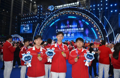 王建華(焊接-世賽選拔廣東省賽第1名,左)、歐雙朋(焊接-國賽精選廣東省賽第1名,中)、吳志平(建筑金屬構造-世賽選拔廣東省賽第1名,右)