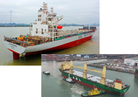 黃埔文沖同日完成2艘船舶出塢節點,包括為亞海航運批量建造的1600TEU系列支線箱船首制船、為AAL SHIPPING公司批量建造的32000DWT重吊船2號船,均為近年來黃埔文沖根據市場需求優化的產品。