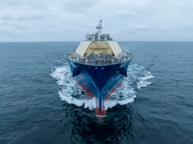 在“華山”號建造過程中,滬東中華以最高標準最嚴要求,全力聚焦“船塢高效搭載、碼頭快速調試、試航精簡流程”等關鍵環節,嚴格執行“精益生產提效率、優化管理強質量”的LNG船建造策略,全力推行數字化建造,推進新工藝新工法應用。刷新動力、氣體“二合一”試航4.5天全球最快紀錄,試航油耗由首制船380多噸降至180多噸,而且提前7個月高質量交付。