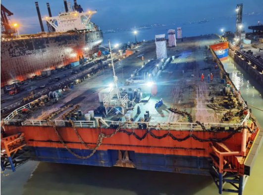 2021~2023年間,“海洋石油229”號在廣船國際文沖修造進行了三期適應性能力改造,對船體總縱強度結構進行了加強,重新建造下水搖臂,升級錨泊和調載系統(tǒng)等,大大提升了該船的運輸及下水能力。