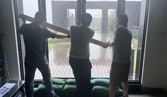 中船九院組織華船物業針對辦公大樓每個樓層門窗關閉情況進行“地毯式”檢查,對重點區域進行加固,安排人員巡查,落實辦公樓區域應急值班人員24小時待命。臺風來襲期間,中船九院針對受大風大雨影響的重點部位再組織有效加固。