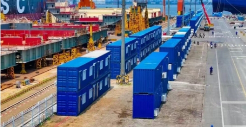 大船天津連續三年共投入800余萬元,分批購置300個集裝箱式休息室,內部安裝空調,為戶外作業員工搭建“夏能納涼、冬可取暖”的舒適休息場所;在“中船幸福驛站”里,50余臺制冰機在各生產一線不停運轉,為員工帶來絲絲涼意;食堂在每日午餐后迅速變身“臨時清涼驛站”,公共區域搭配按需取用的單人涼席,讓員工在餐后盡享片刻清涼;在露天作業現場配備成片的遮陽棚和冷風機,切實為員工撐起高溫下的“防護傘”。