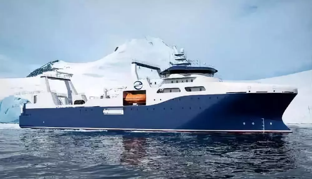 ????“深藍(lán)號”由黃埔文沖建造,七〇八所參與設(shè)計(jì),總長約120米,型寬21.6米,設(shè)計(jì)吃水7.3米,設(shè)計(jì)航速15節(jié),主機(jī)功率8000 千瓦,載重噸約5000噸。“深藍(lán)號”是我國自主研制建造的第一艘漁業(yè)捕撈加工一體船,也是目前最大最先進(jìn)的漁業(yè)捕撈加工一體船,取得近200項(xiàng)知識產(chǎn)權(quán)保護(hù),實(shí)現(xiàn)了我國現(xiàn)代化漁業(yè)船舶裝備領(lǐng)域的重大突破,達(dá)到世界先進(jìn)水平;主要用于南大洋漁業(yè)捕撈,兼顧海洋科考功能,可滿足ICE-A冰區(qū)(冰厚度0.8米)及-25℃低溫環(huán)境的營運(yùn)要求。