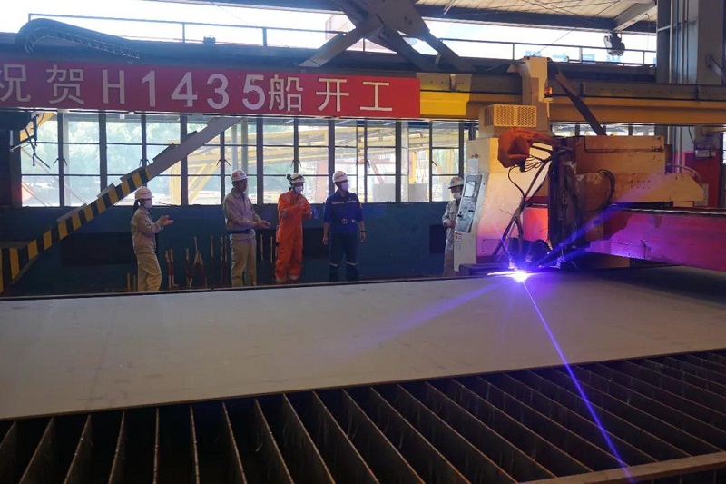 ????日前,中國船舶集團旗下外高橋造船為PTM公司建造的阿芙拉型油船順利開工。受疫情影響,船東駐廠組代表無法到場,特意委托英國勞氏船級社(LR)代表驗收開工鋼板情況、見證鋼板切割,并以“云簽字”的形式簽署了開工節點證書。