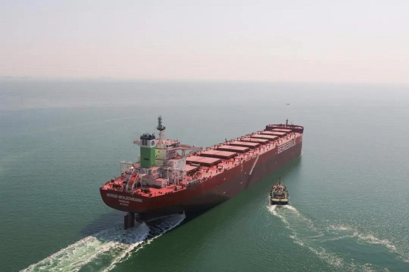 ????近日,中國船舶集團(tuán)旗下大船集團(tuán)渤船重工為新加坡百國山公司建造的21萬噸散貨船21號船“BERGE MOLDOVEANU”號簽字交付。該船是渤船重工復(fù)工復(fù)產(chǎn)后交付的第2艘船舶產(chǎn)品,同時也是渤船重工為百國山公司續(xù)建的4艘21萬噸系列散貨船中的第2艘,也是雙方合作15年來交付的第15艘船舶產(chǎn)品。
