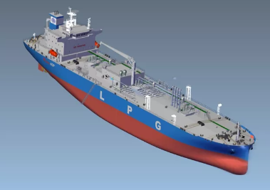 該型船設有3個A型獨立液罐,除液化石油氣(LPG)外還可運輸氨水和氯乙烯單體(VCM)等更多的石化產品,其顯著特點是配置了一臺綠色環保的LPG雙燃料主機,配合軸發在LPG燃氣模式下,硫氧化物(SOx)的排放可以降為“零”;配合江南造船節能技術的應用,該型船燃氣/油經濟性指標處于國際領先水平;配合江南造船智能船舶系統,該船型還可為船東優化航線、提升綜合能效和船岸一體化管理效率。