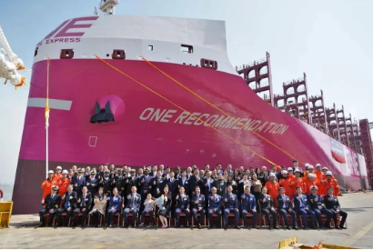 3月21日,由中國船舶集團外高橋造船聯合中船貿易為加拿大Seaspan Corporation(以下簡稱SEASPAN)建造的7000TEU集裝箱船“舉賢”號(ONE RECOMMENDATION)順利完成命名。