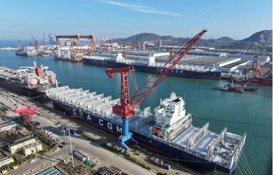 12月3日,中國(guó)船舶集團(tuán)青島北海造船與中船貿(mào)易作為聯(lián)合賣方,為達(dá)飛海運(yùn)建造的系列5500TEU集裝箱船“CMA CGM KAURI”號(hào)舉行命名交付儀式。該船是北海造船交付的第8艘5500TEU集裝箱船,也是北海造船年度交付的第19艘船。